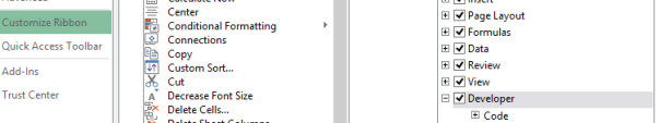 Excel dosyalarinizda alttaki gibi bir DEVELOPER sekmesi goremiyorsaniz, oncelikle Excel ayarlarimizdan DEVELOPER modunu acalim.