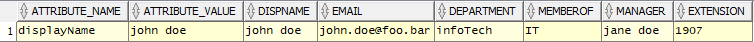 pipe ROW(TLDAPATTR(attrName,valList(name),v_dispname, v_email, v_department, v_memberof, v_manager, v_extension));